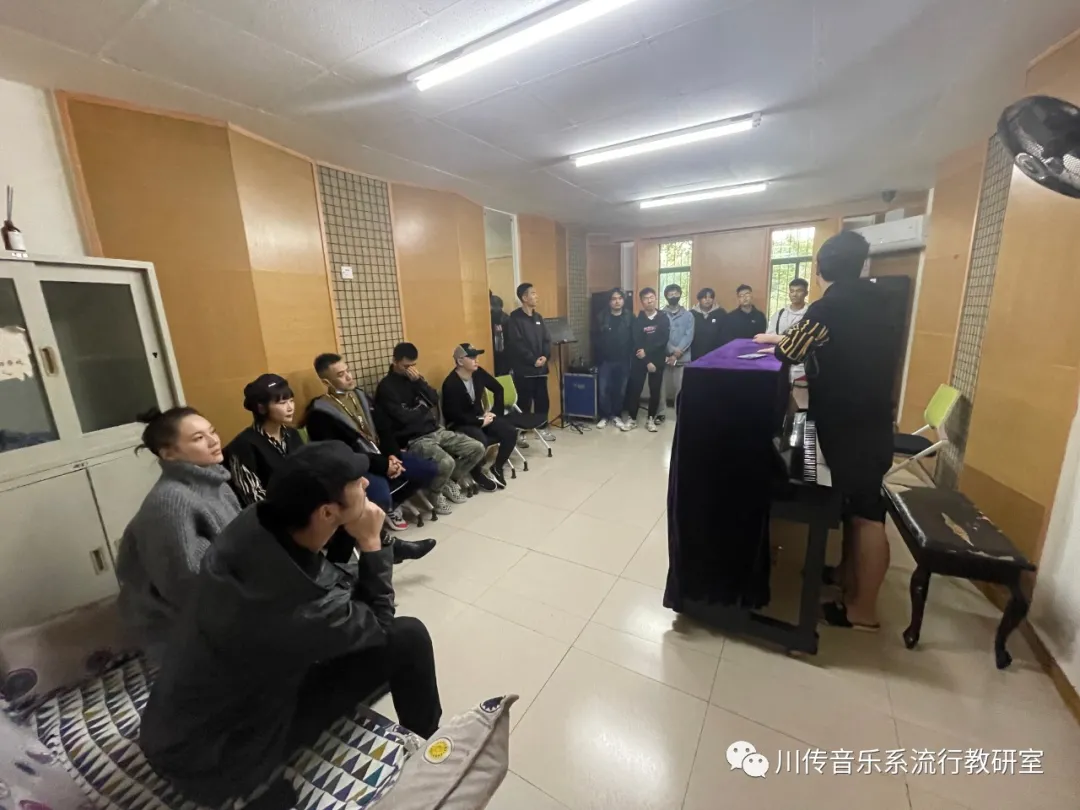 2021年10月21日,一群热爱创作的同学们齐聚在A14-310琴房,流行教研室相关专业老师莅临现场进行了原创音乐团新人选拔以及团长换届选举。活动选出张传坤为下一届团长,王亚彬为副团长。本次教研活动由王超老师主持,明确学期任务,提升创作专业性。张瑞冬团长针对新的学期目标、新的规章制度等进行了具体的布置和讲述。
