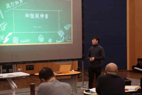 首先出场的陈舒曼老师通过原理解说和现场进行钢琴弹奏相结合的方式生动形象地讲解了钢琴弹奏发力的基本概念。同为钢琴教研室的李耕老师也采用了类似的教学方法对和弦延伸音的概念进行了细致的讲解和演示,讲课中表达自然流畅,易于学生理解。