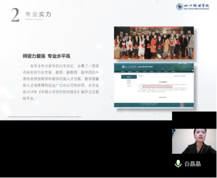 接着,音乐表演专业主任白晶晶老师以及音乐学专业主任易慧敏老师先后就专业情况先后发表讲话。