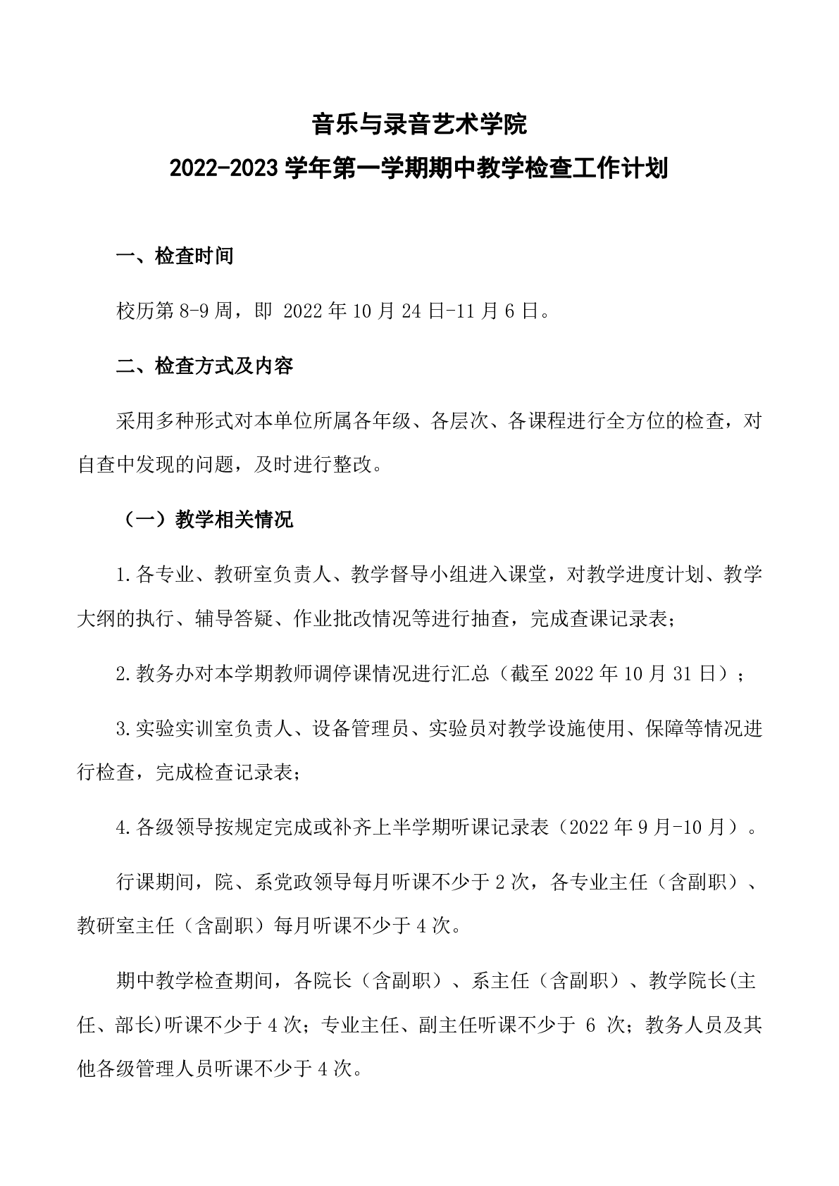 关于2022-2023学年第二学期音乐与录音艺术学院期中教学检查工作安排的通知