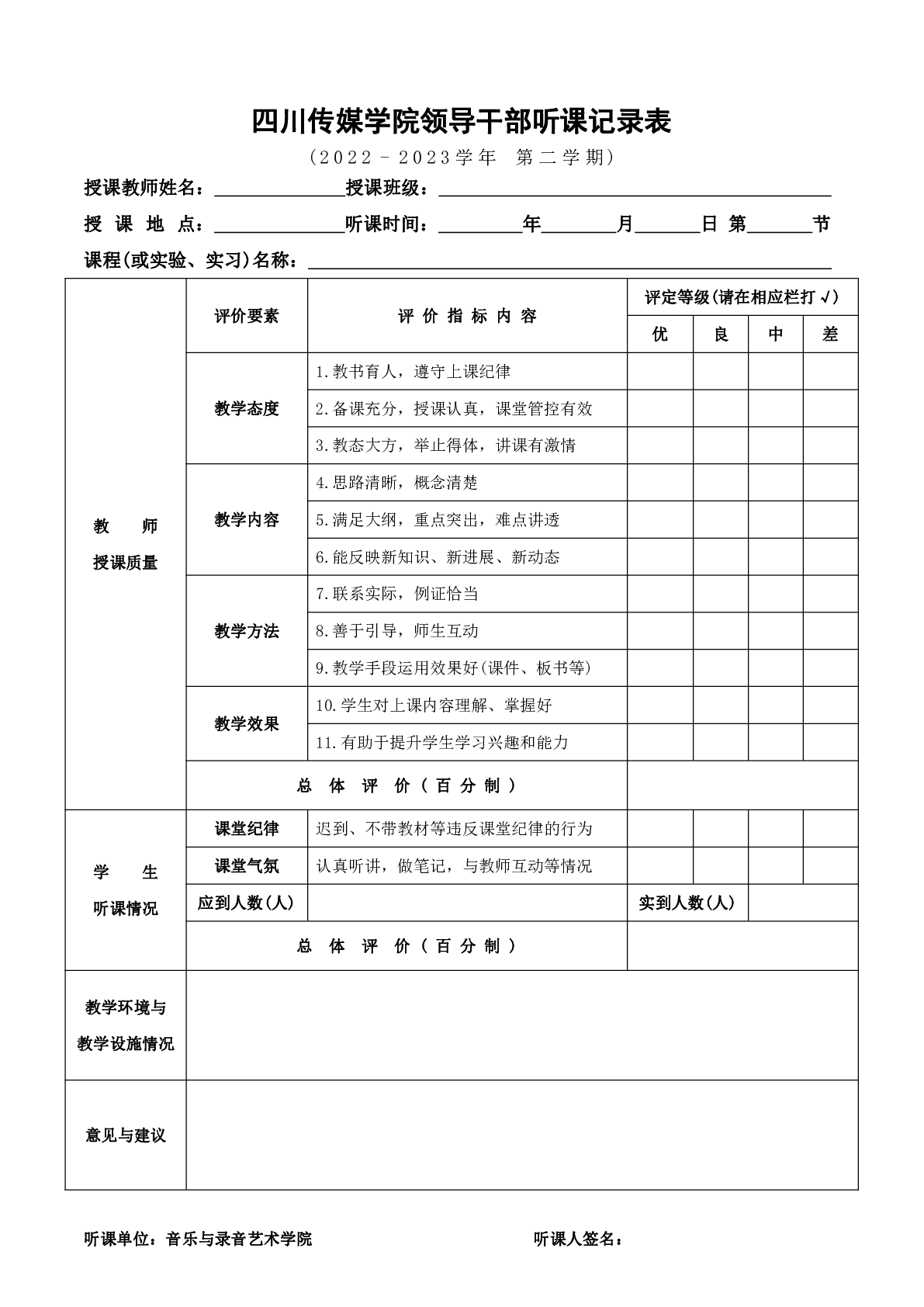 关于2022-2023学年第二学期音乐与录音艺术学院期中教学检查工作安排的通知