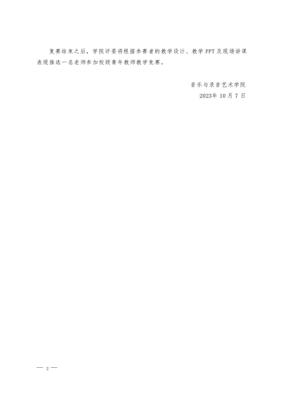 音乐与录音艺术学院关于举办2023年青年教师教学竞赛的通知
