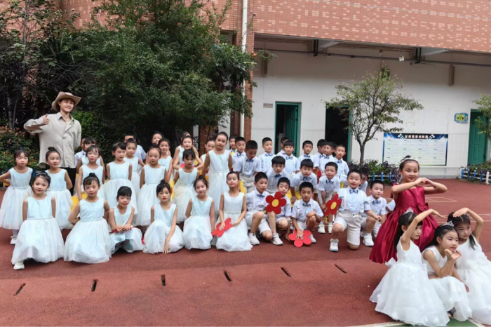 经历两周系统的听课学习后,实习老师们正式进入了教学实践阶段。当我们忐忑地坐在钢琴前,学着指导老师的样子弹出“do mi sol mi do”的音符时,无需语言交流,学生们立刻乖乖坐直,当琴键间流淌出动听的旋律,学生们又迅速地起立,以整齐的歌声向老师致以问候。我轻轻闭上双眼,聆听那如晨间清风般纯净的歌声,内心深受触动。音乐,以其潜移默化的力量,无声地传递着情感与智慧,其影响力远远超过了简单的言语交流。