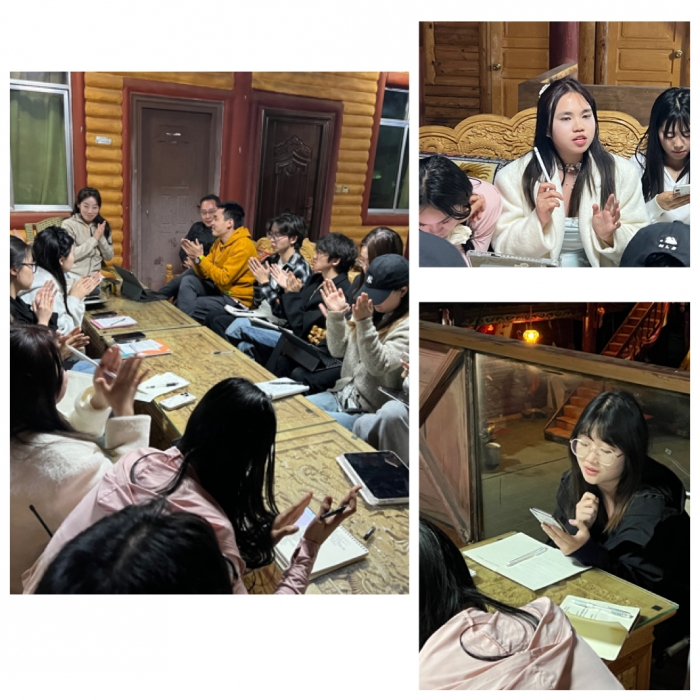 采风第三天,就地开展了“音乐学专业2022级云南采风研讨会”,以民间艺术为主要话题,师生畅所欲言,各抒己见。学生重点从音乐舞蹈、文化传承、教育现状及发展等发言,讨论十分热烈,大部分结论较独到且具有一定理论意义和实践价值。