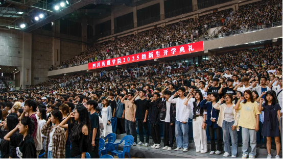 典礼在庄严的国歌声中拉开帷幕。全体师生起立高唱中华人民共和国国歌,展现出新一届川传学子昂扬的精神风貌。