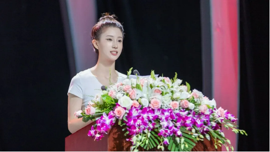 ▲优秀校友、播音主持专业2008级毕业生唱寰宇发言
