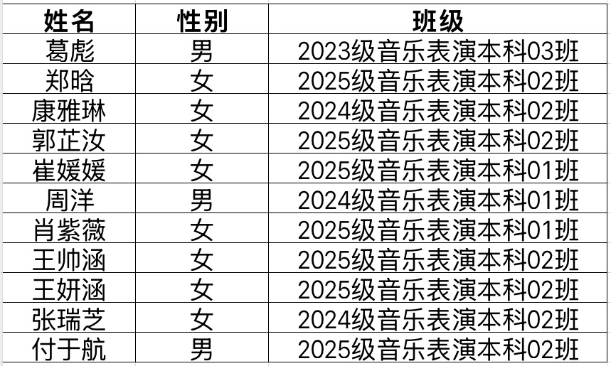 接下来将进入考察期。暂未入选的同学请勿气馁,音乐系仍有众多舞台,期待你们继续闪耀。