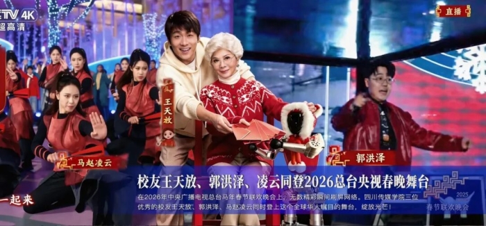 继校友王天放、郭洪泽(土豆)、凌云亮相2026央视春晚为大家带来《奶奶的最爱》《冰雪暖世界》《立上游》等节目之后,这个寒假,还有更多四川传媒学院师生、校友忙碌在聚光灯内外。